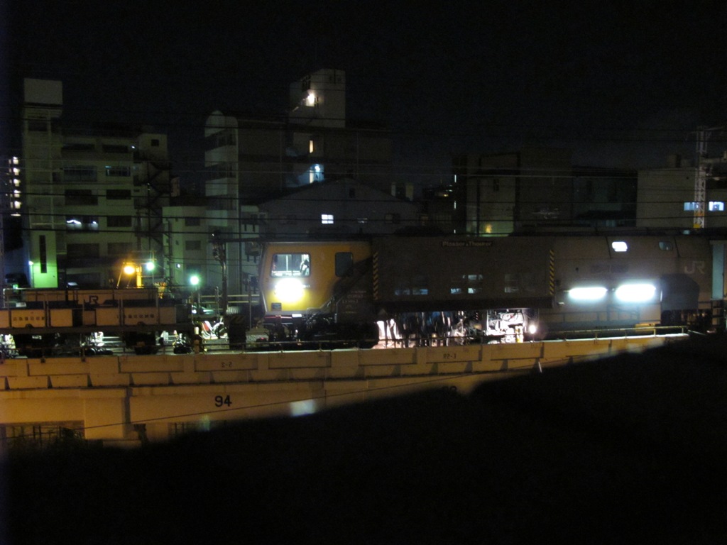 たま~に夜遅くに「雷鳥」とかのいわゆる国鉄485系の奈良行きの車両が線路を走ってるのを見ることがあります。環状線には日常走ってない車両ですから意外性があってこれも面白いです。残念ながら写真は無いですけど。