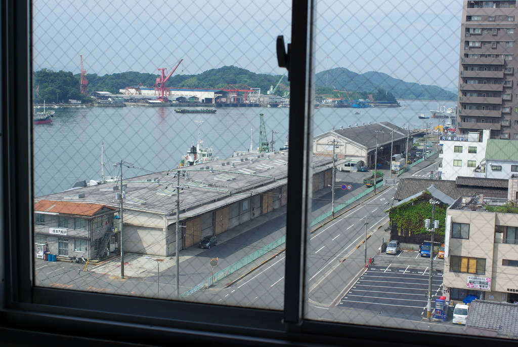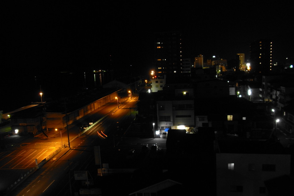 部屋からの景色です。暗くてわかりにくいですが、左が海。