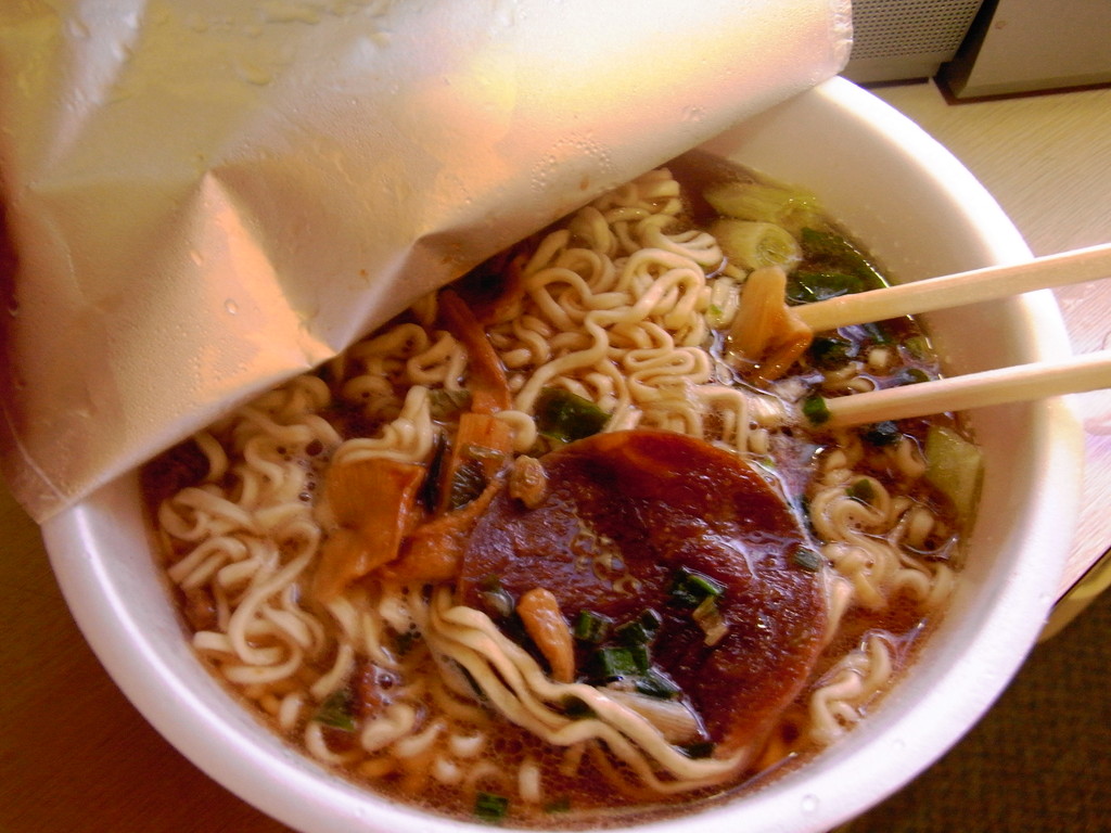 部屋にはお湯を沸かす電熱器みたいなのがあります。さっそくラーメンを作ります。今日びのラーメンは本当にうまいことできてますねえ~。スープは本物の味と遜色無いわ・・・。麺は金ちゃんラーメンみたいな感じだった。美味しかったです。
