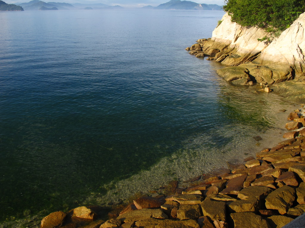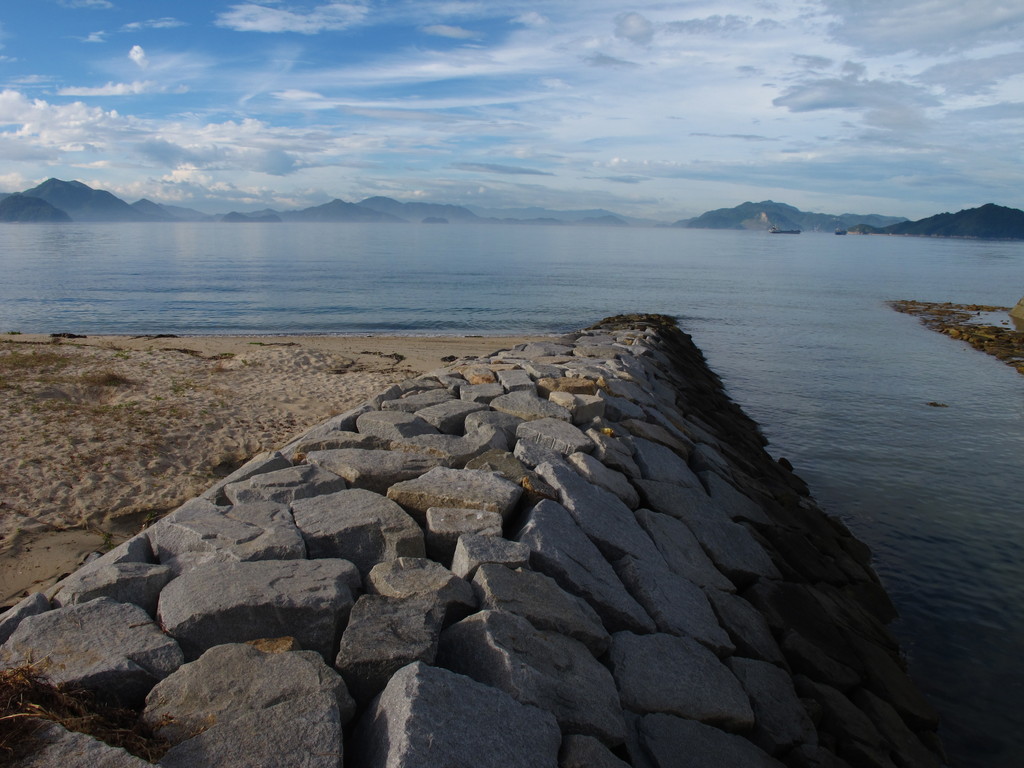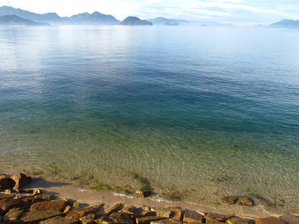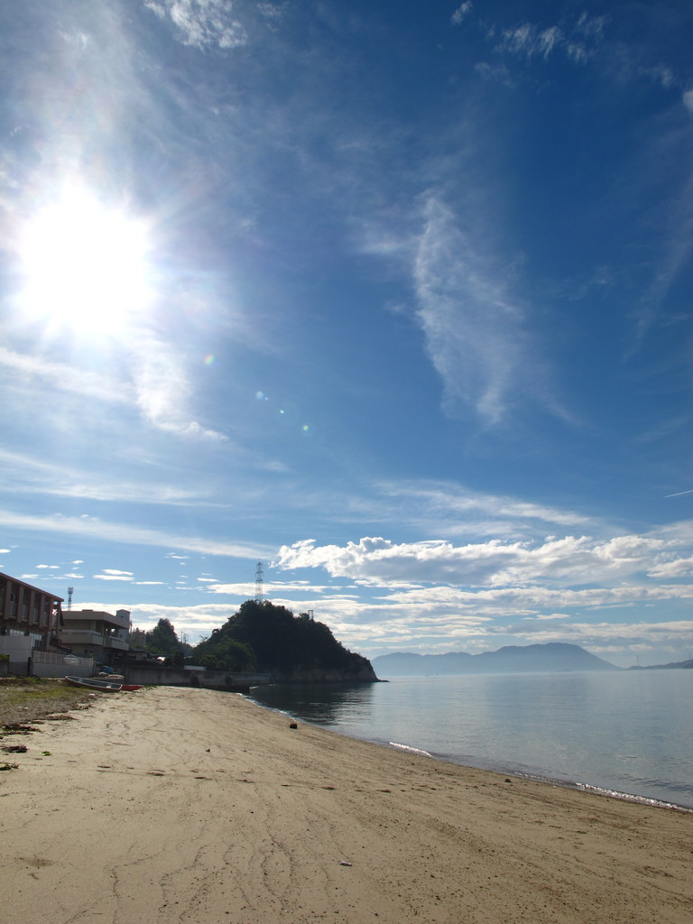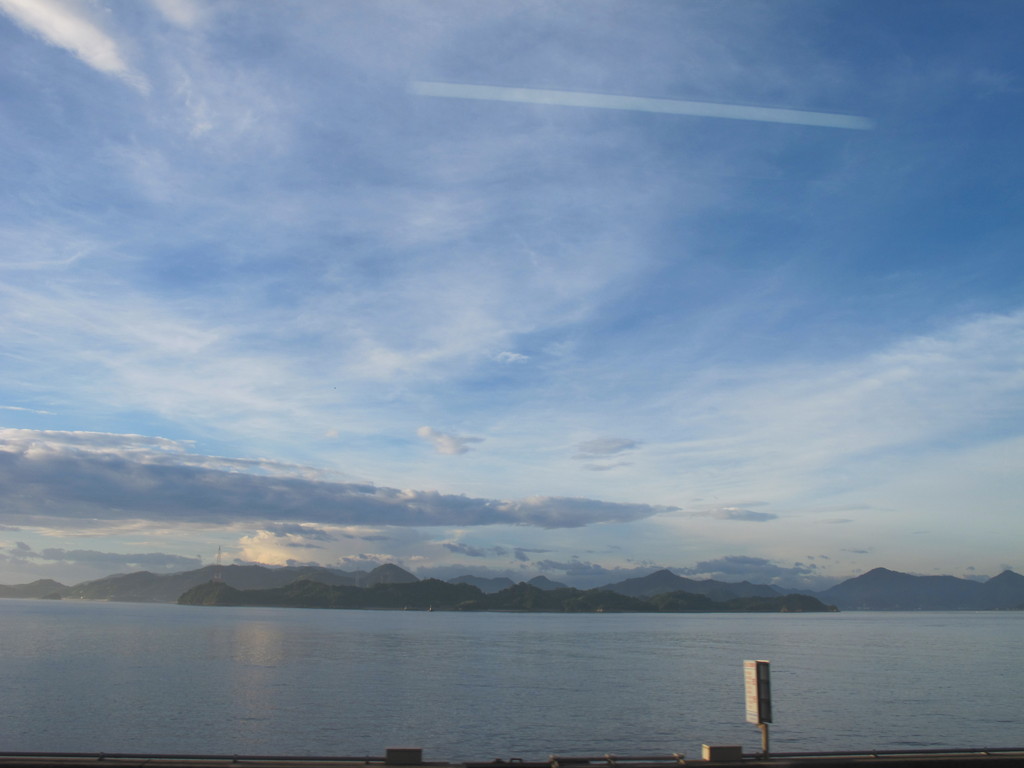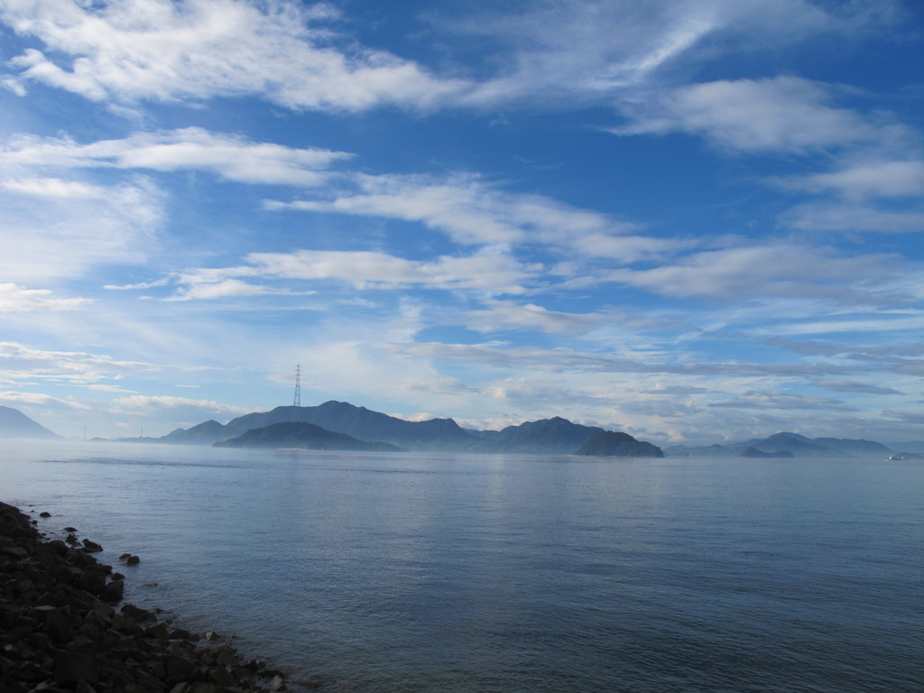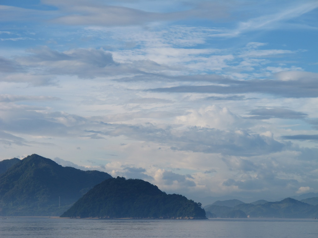 うぉー!何回も来てるけど何か一番すごく絵っぽい景色だ!島がもやで霞んでいる!しかもダイナミックな雲!
