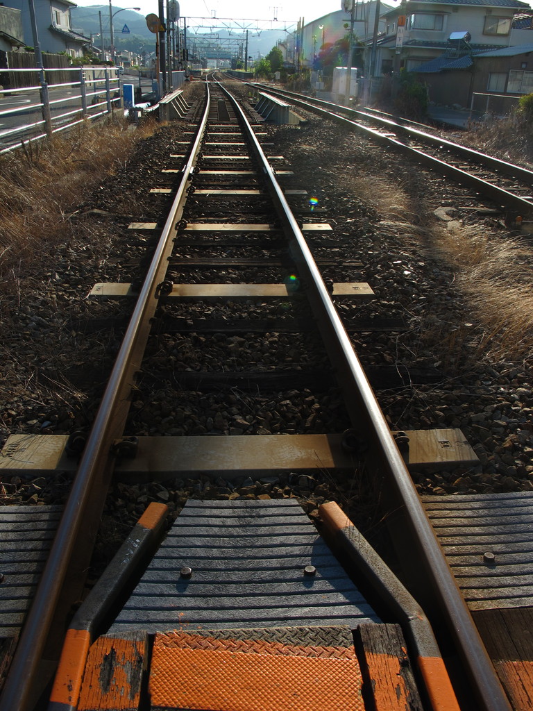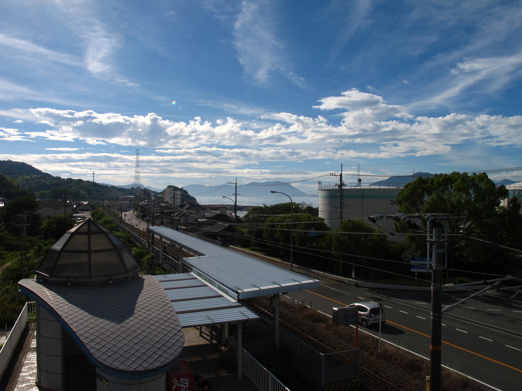 ゆっくりしすぎて電車が来るまであと3分しかない!でも走ったら汗だくでエライことになる!とすごい速足で安芸長浜駅に向かいつつ、鉄橋の上から一枚。
