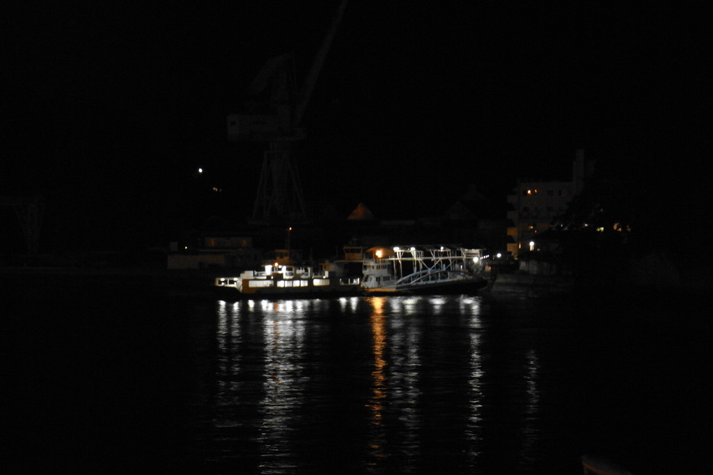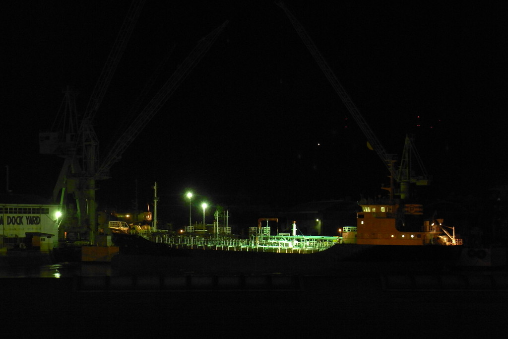 去年の年末も夜に一度来たんですが、その時は向島のクレーンを赤や緑にライトアップしていてキレイだったんですけど。今回は特になにもなかった。ちょっとそれも目当てだったので残念。
