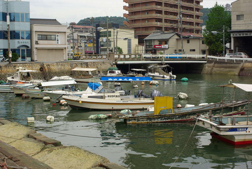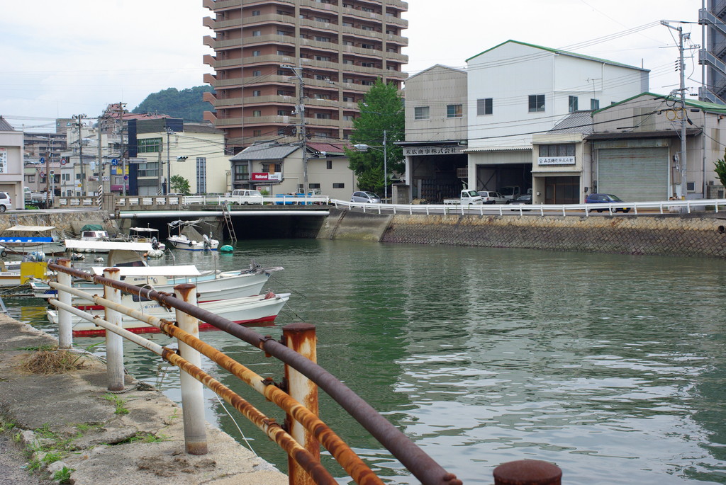 さて、墓地から駅までは約1キロくらいはあるんですが、途中のこの船溜まりがお気に入り。引潮のようで、水はかなり汚かった。