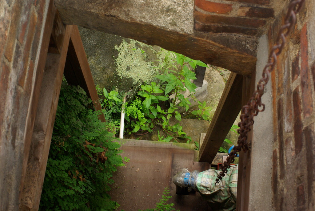 二階井戸というものを発見。町の発展につれ人々の生活が坂の中腹に及ぶにつれ、水の確保のため1階にある井戸を2階からくみ上げるような感じで2階建てのつるべになってるそうです。