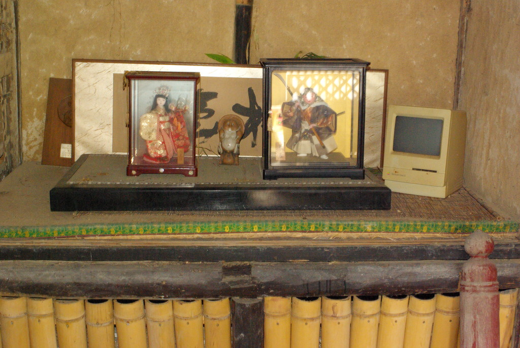 見づらい写真ですいません。なんで日本人形と古いマックが・・・これがアートか・・・。