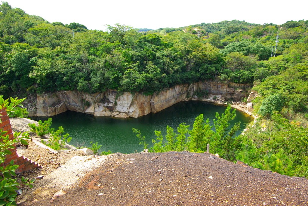 精錬所裏にはおおきな池のようなものがありました。採石の跡でしょうか。