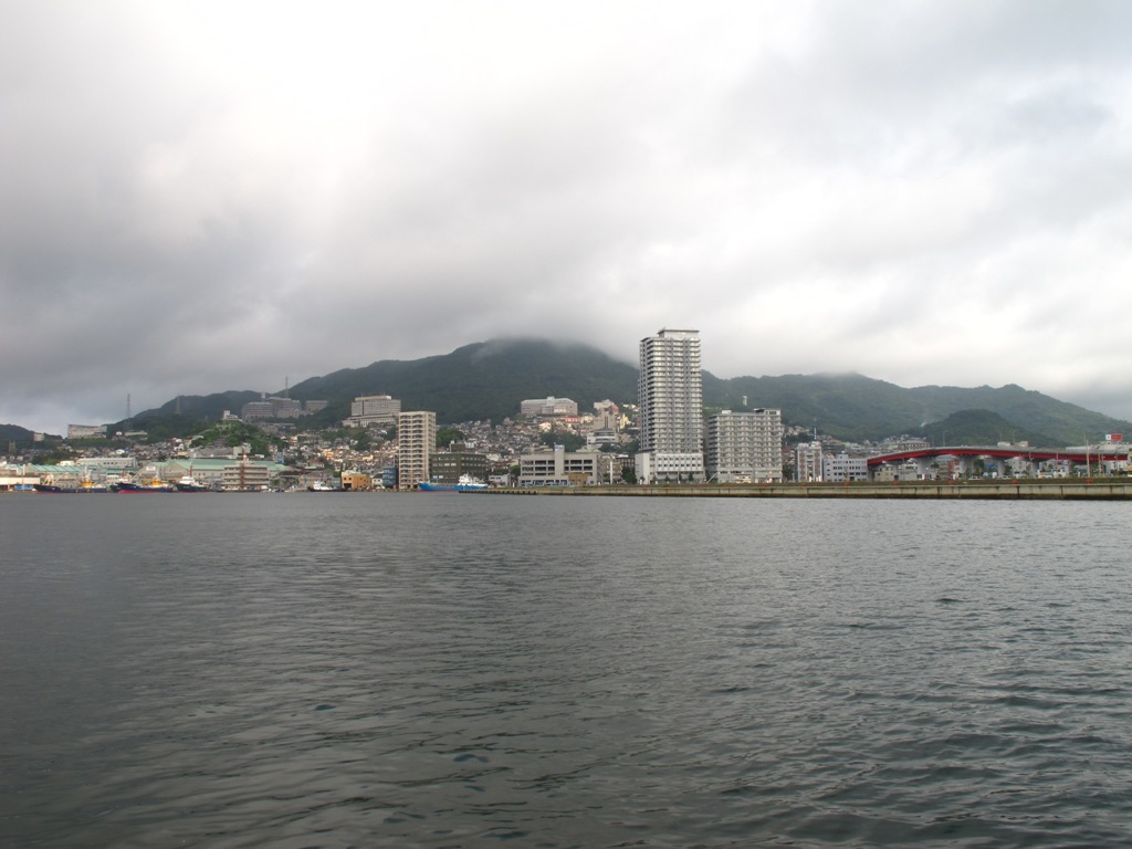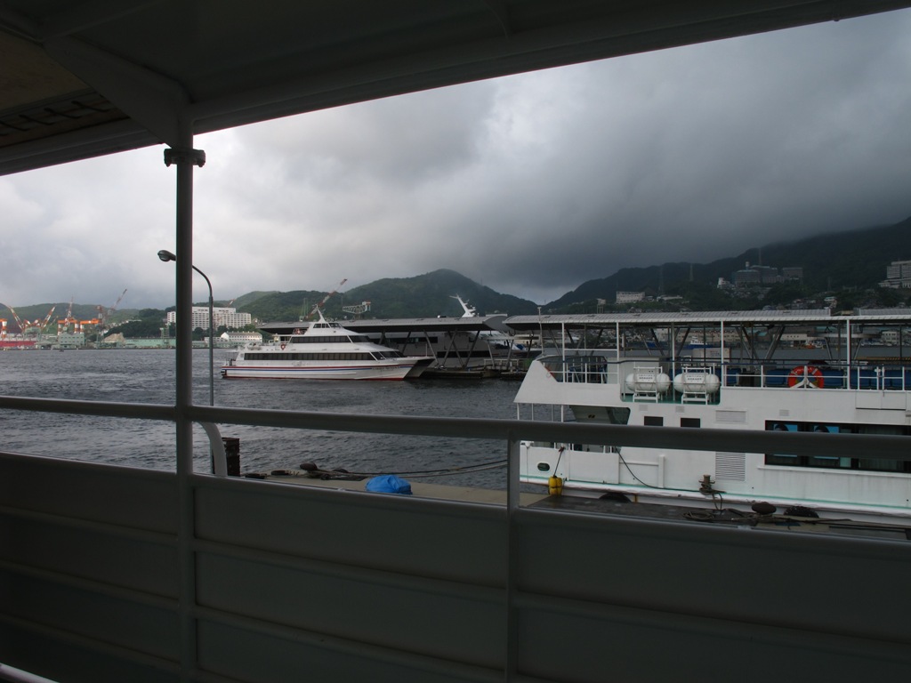 長崎到着。しかし、見慣れぬ番号から着信があって、かけてみたら、軍艦島ツアーの会社からで、「波が高いので上陸コースは中止になりました」との連絡が・・・