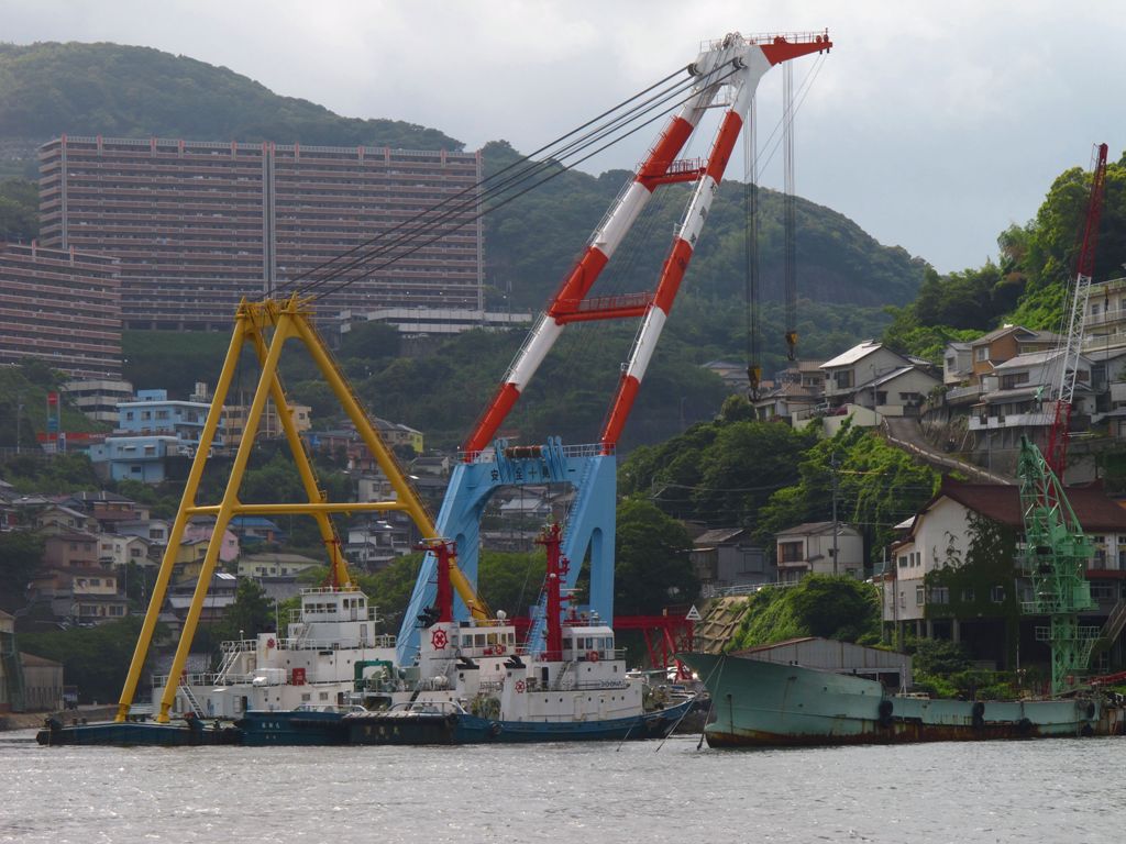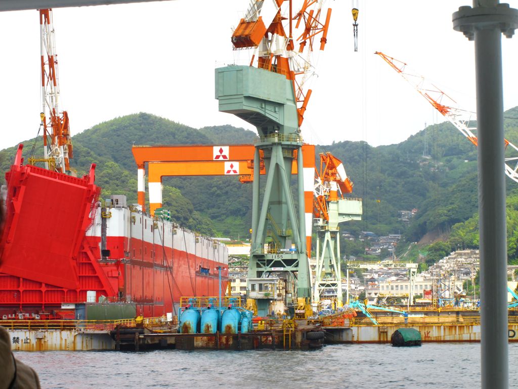 湾から外海に出るまでは造船所などの工業地帯風景が続きます。船の中では周辺の案内音声が流れていますが、向かって右側の景色を中心に解説しているので、左向きに座った私はほとんど聞いても景色を見る事ができず、途中からは帰りに見ればいいわ~と思い、ほとんど解説は聞いてませんでした。