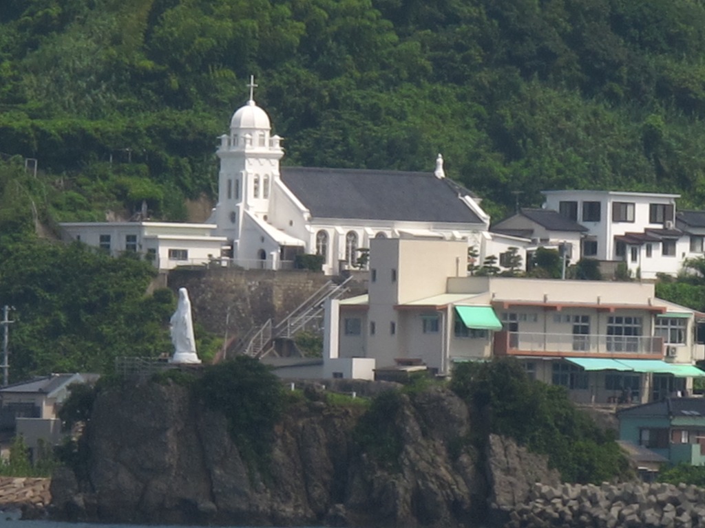 神ノ島です。教会があって、岬にはマリア様が立っています。非日常感がすごい。同じ日本とは思えない・・・衝撃です。ちなみに神ノ島は島といっても埋め立てられて陸続きになっており、バスが出てるみたい。今回は軍艦島の事しか考えてなかったから事前になにも予定組んでなくて、今思えば神ノ島に行けばよかったと改めて唇噛んでいます。