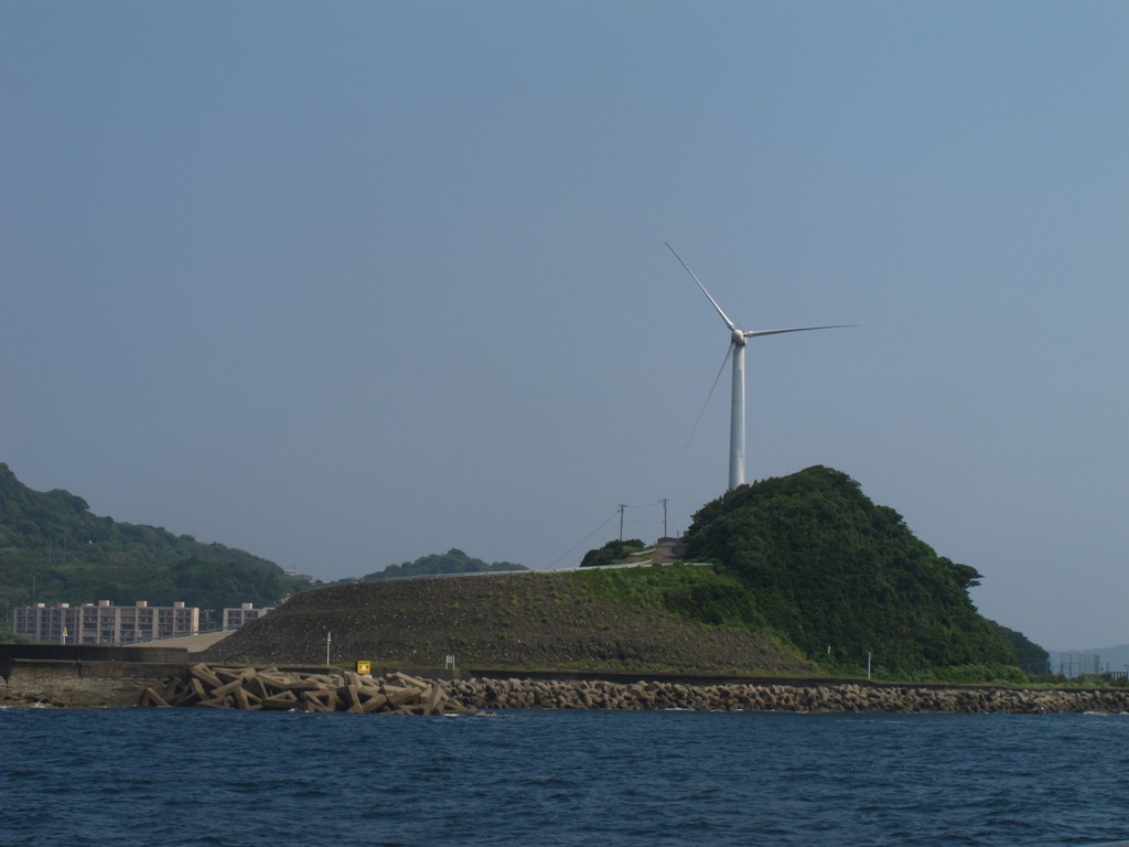 高島。このあたりは軍艦島の端島だけじゃなく、他の島も炭鉱があって石炭を取っていたそうです。現存する炭鉱アパートとかもあるみたい。島の電気の供給はこの風力発電で担っていたようですが、たまに停電とかする端島にも供給されてたらしい。