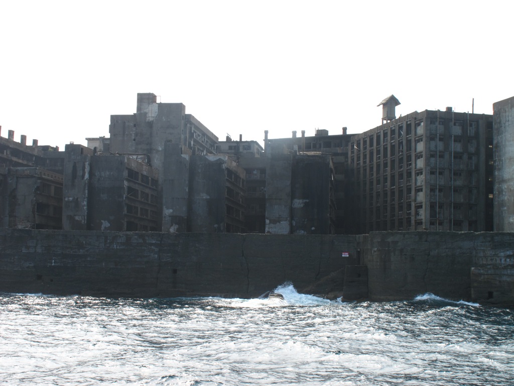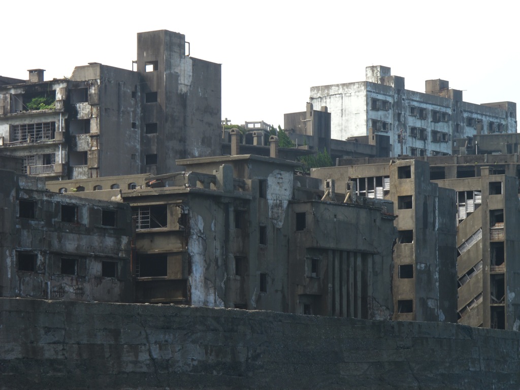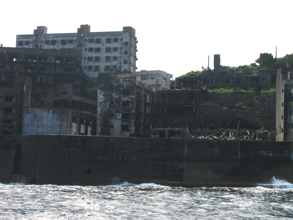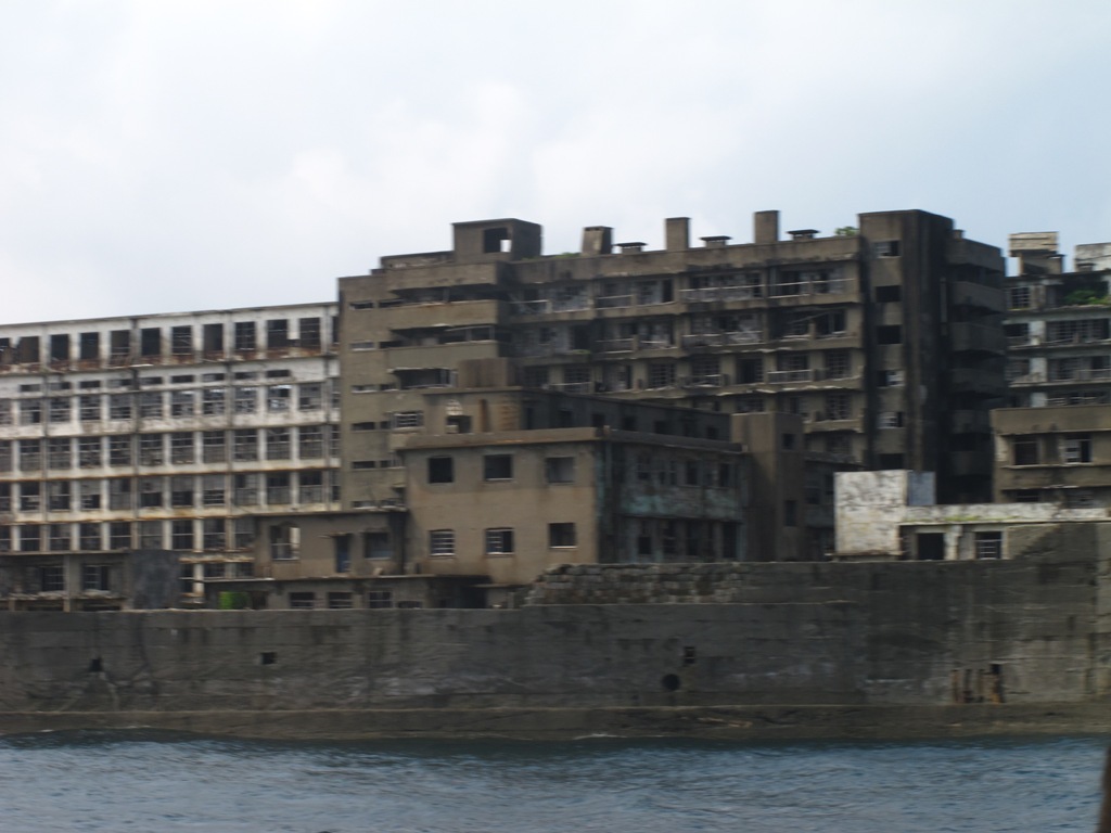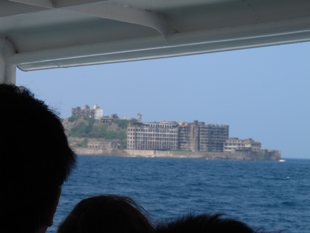 すごい迫力。外海側から島を一周します。外海側からはアパート群が見えます。びっしりぎゅうぎゅうに建ってます。建築基準法とかどうなってんの!?ってくらい密集してます。人口密度日本一だったのも納得ですよ