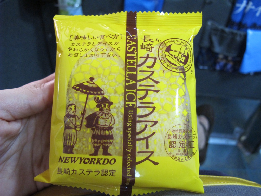 翌日は、夕方の阪九フェリーに乗るまで小倉で過ごすべく、10時のバスで小倉駅前に向かいます。長崎のバスセンターでカステラのアイスを買ってバスで食べました。安心の美味しさ。