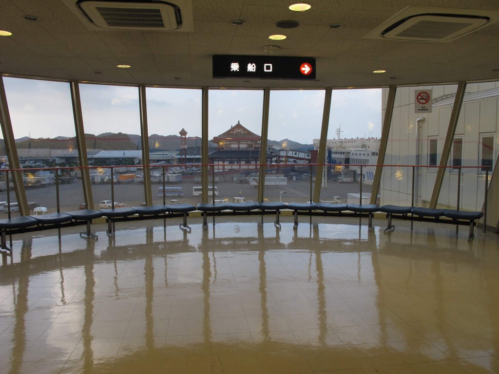 来るんじゃなかった・・・もう家に帰りたい・・・と泣きたい気分ではあるのですが、一応クルーズであれば運航の予定ですとの事だったので、とりあえず船の乗り場に行く事にしました。私は瀬戸内海ばっか見てるのであまり荒々しい海に出会う機会が無いのですが、結構軍艦島のあたりは波が高く、上陸できる確率は70%くらいらしい。まあ前日の天気予報で波が高いって言ってたから中止の覚悟はしてたんですが、自然相手とはいえ、簡単に来れる場所じゃないし・・・正直、この為に往復交通費とかさあ、ホテル代とかさあ、お金もかかってるのよねー・・・と愚痴を言いたくもなるというものですよ。