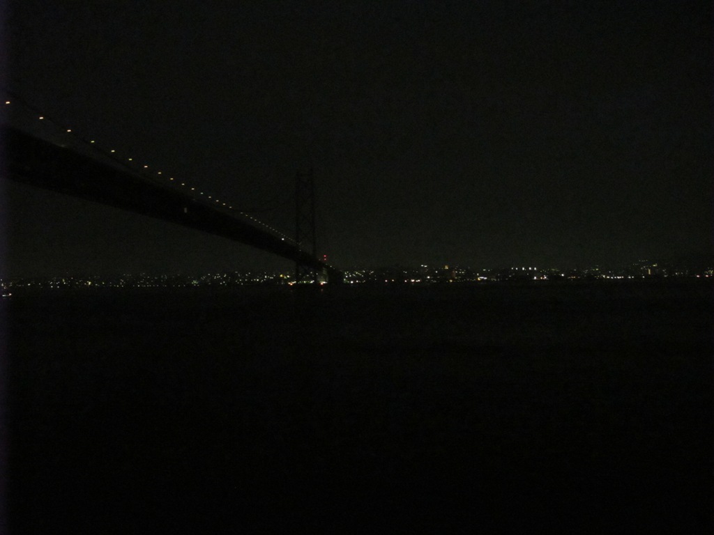 起きられるか心配でしたが、しっかり明石海峡大橋通過時刻には目が覚めました。しかしカメラを持って飛び出して行ったものの、真っ暗で何も見えなかった。