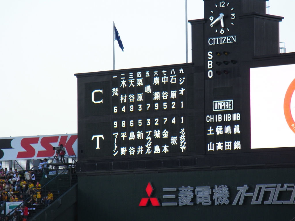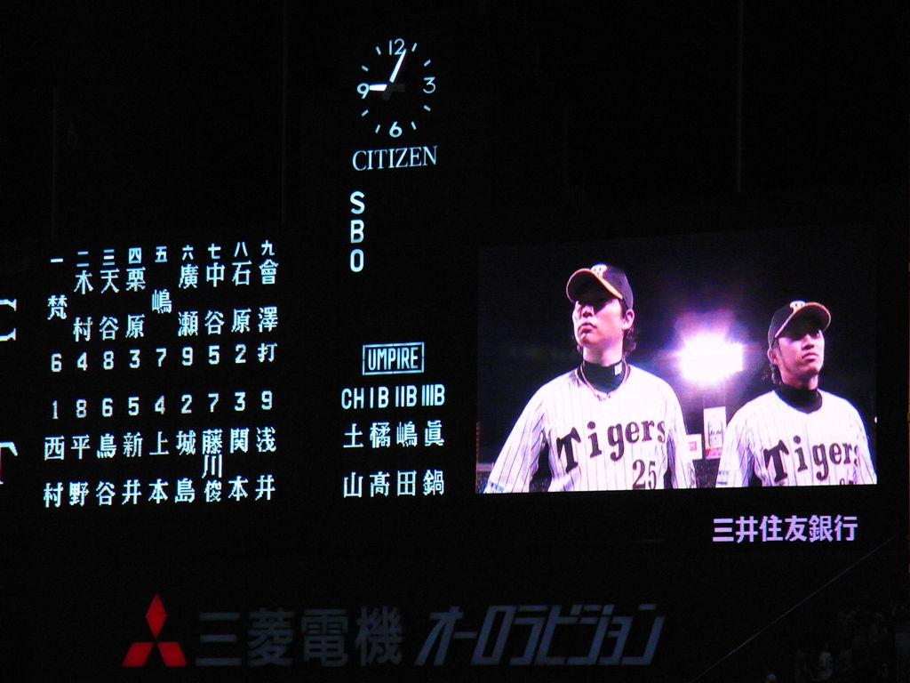 試合は7回裏にも追加点をあげ、もう余裕ぶっこいた感じになってきた。金本は途中で藤川俊に交代したし、マートン様はヒットを打ったし、ブラゼルのホームランも見たかったけど、今日はお打ちになられなかった・・・残念。