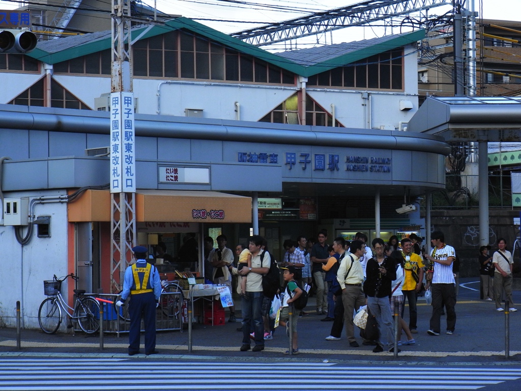 暮れなずむ甲子園駅前。観戦する人々がどんどん増えていきます。