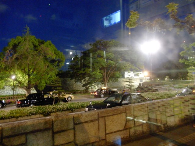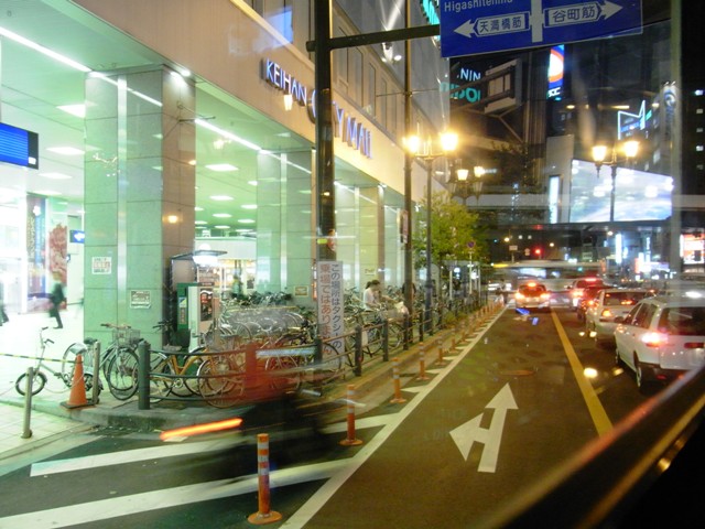 淀屋橋。止まってる時しか写真は撮れません。走行中は光が流れまくるので、せっかくの水晶橋や淀屋橋からの景色も信号が青だったため撮れませんでした。多くの人は橋や日本銀行の夜景写真とかを期待されて見てくださってるはずだと思いますが・・・期待はずれですいません。ちなみに公会堂や北浜のライオンとか、大阪丈などもまったく撮れませんでした。(詐欺や!と言わないで!)