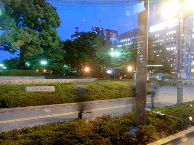 阪急百貨店前。ブツブツしてるのは、バスの窓の汚れです。ご勘弁。