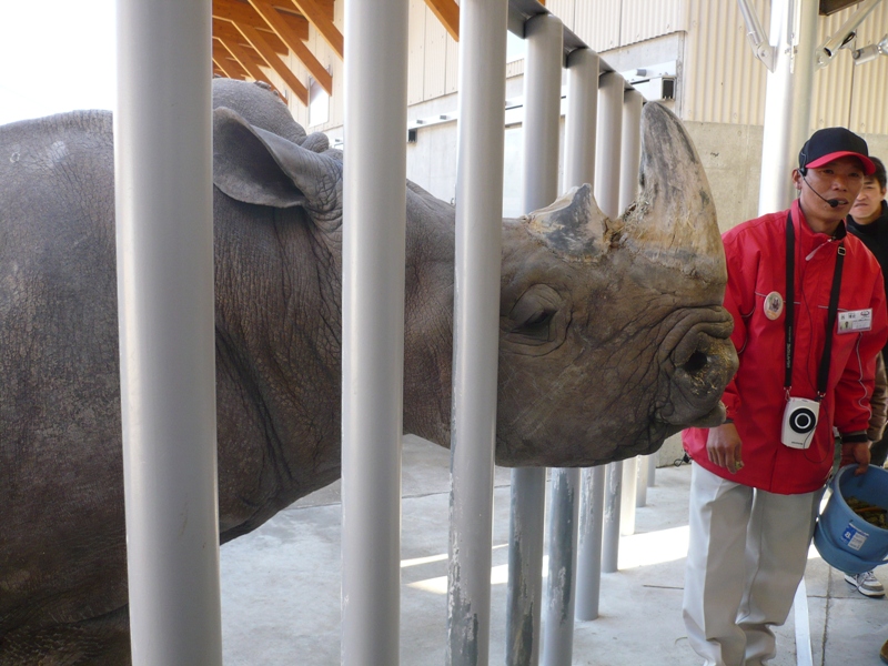 姫路のサファリは自家用車で入れるのでスリリングですが、白浜は専用のバスで移動します。いろんなコースがありますが、今回はサイにエサをやったり、猛獣舎に入れるコースにしてみました。
