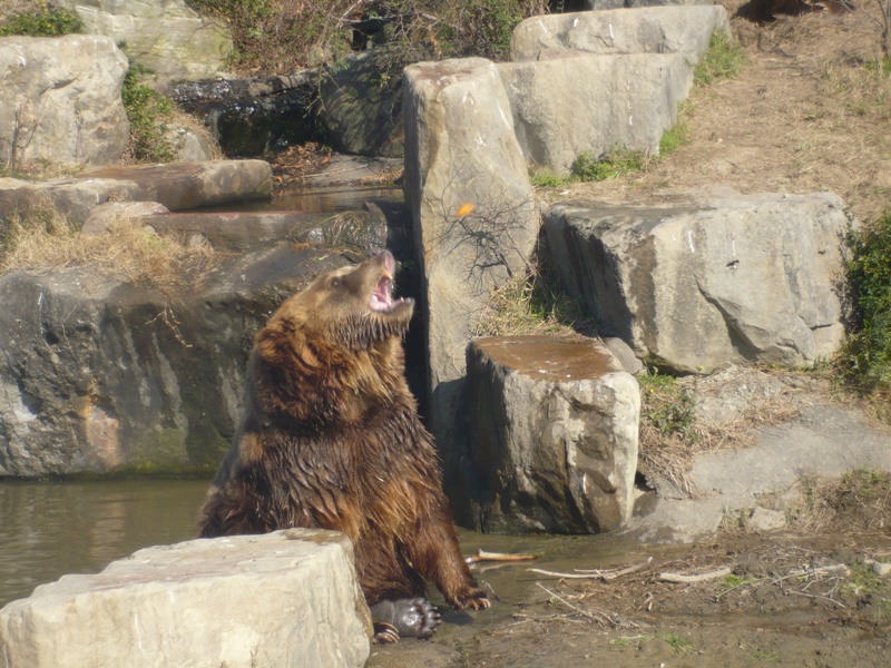 バスにあわせてエサやりをしたり、ちょっとしたアトラクションがあったりします。くまがみかんをキャッチするところ。
