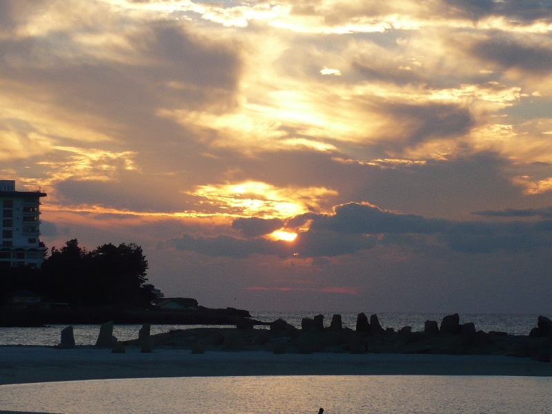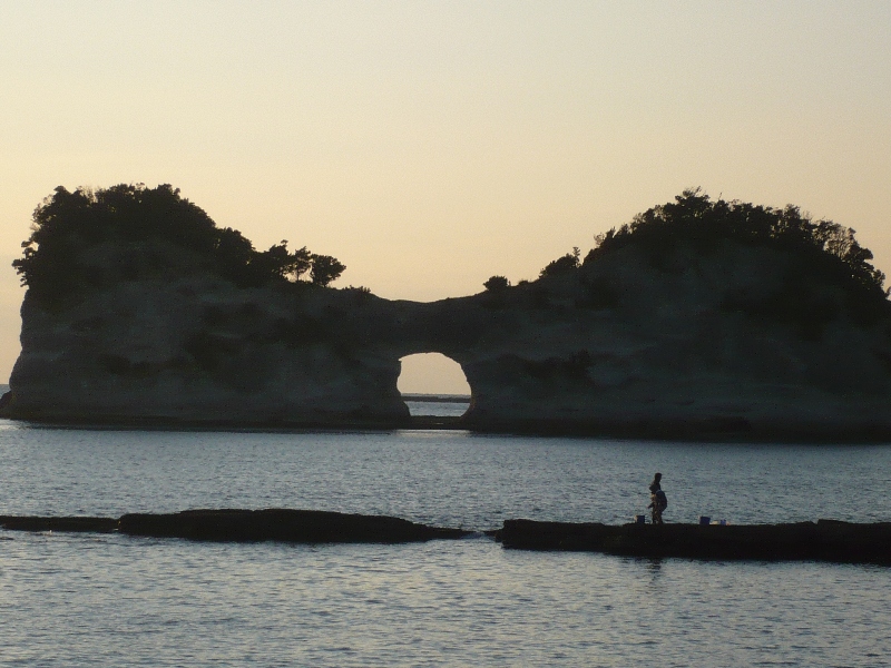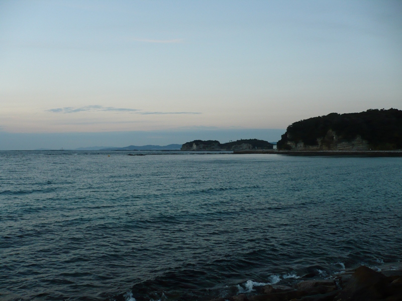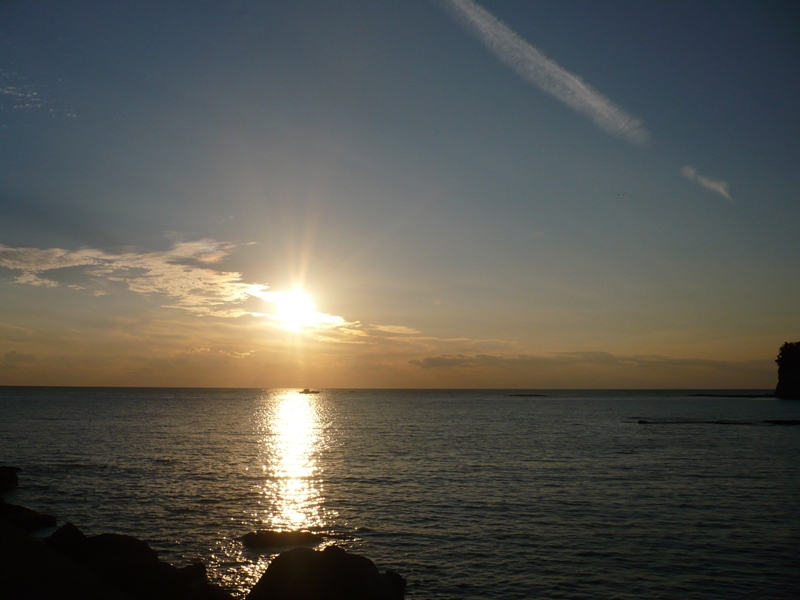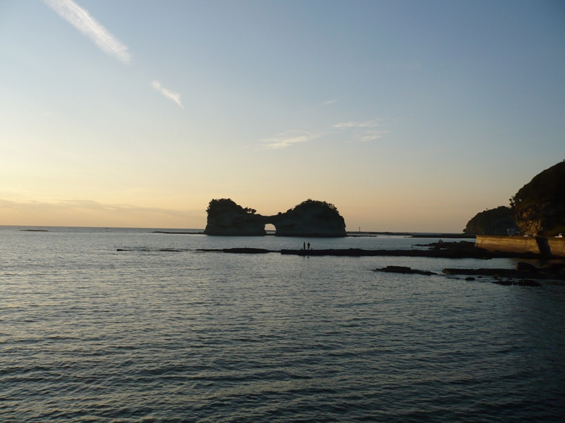 夕陽はこっち、右端にちょこっと見えてるのが円月島です。