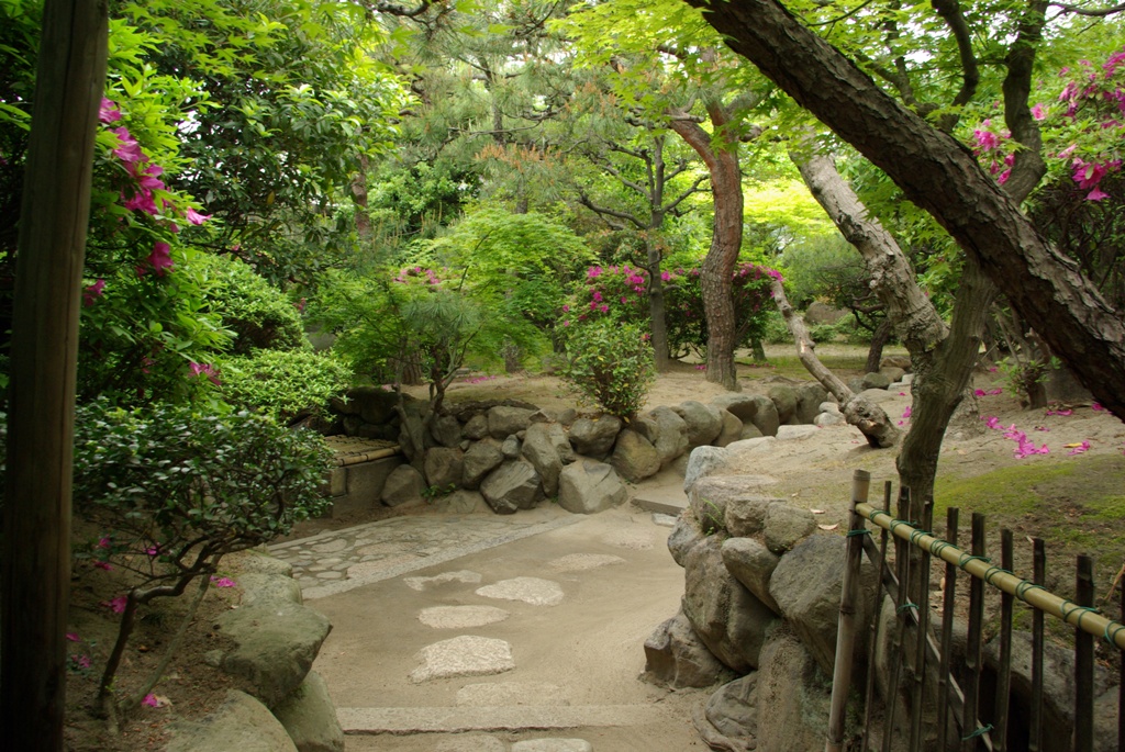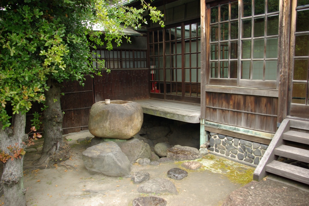 庭石も景色に合わせて配置されているといいますが、ここからの景色が一番茶室と庭がバランス良く見えるという位置の石はひし形になってました。ここの家の家紋もひし形なんですが、なんか意味あるのかしら。