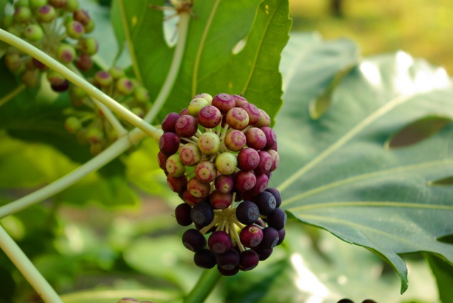 ヤツデの実はハスの花みたいに魅入ってしまう。伊藤潤二の漫画にこんなんあったような気がする。