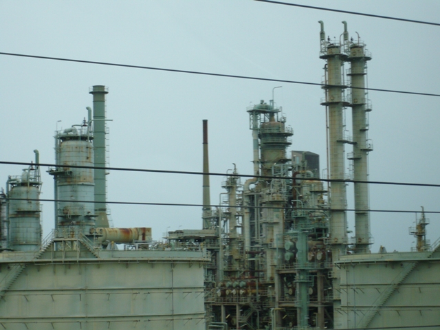 堺だか泉北だか臨海工業地帯(地域?)のプラント群なんですが、無機質にひしめき合うなんという名で呼ばれてるのかだかさっぱりわからない、複雑にからみあってる何が何だかわからないパイプみたいなもんが、すべて人間の手で造り出されて、ちゃんと一本一本なんだか知らないものの中を何かが流れてたりして意味があるかと思うと、なんだかんだ言って、煙とか出して空気とか汚したり地球を危なくしてるとはいっても、人間すげーよ!と思ってしまう。昼間に通っても十分圧倒される見ごたえですが、夜や明け方が最高だと思います。でも走行中の車から夜の複雑な工業地帯の写真なんて撮れるはずもなく・・・。