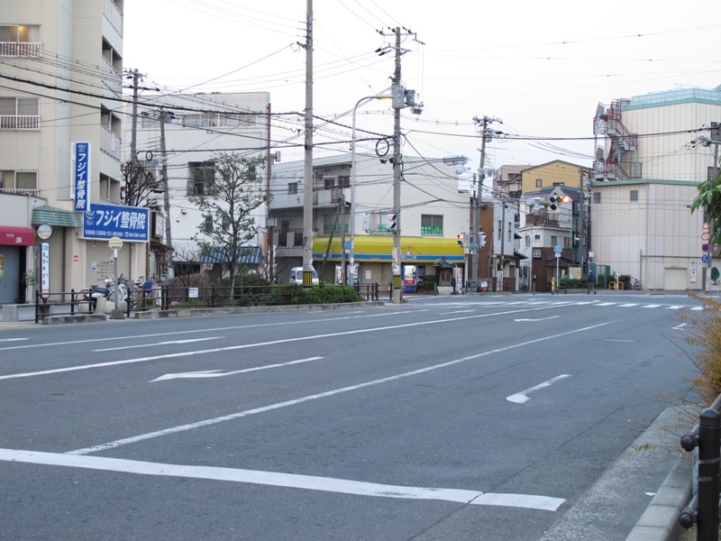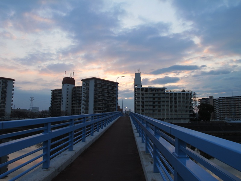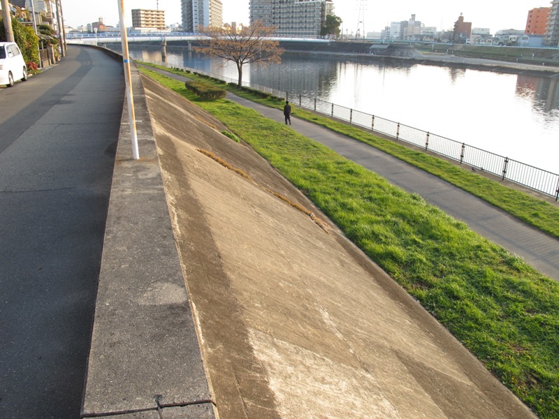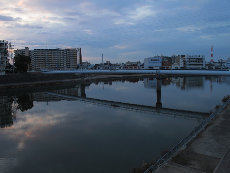 向かいのマンションの辺りは中州のようになってて、マンションのむこう側は神崎川が通っており、この先で合流しています。