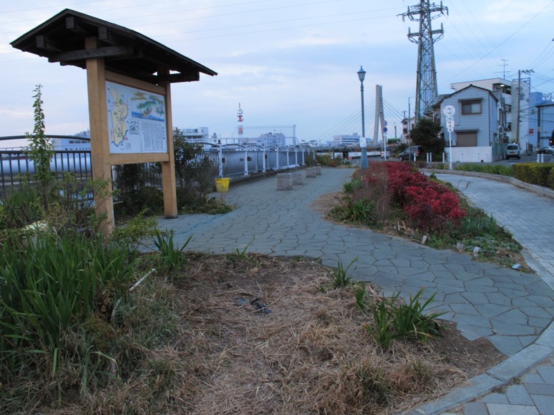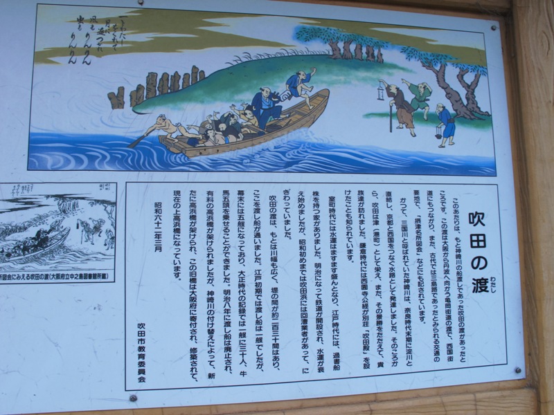 安威川にかかる上高浜橋のそばにある吹田の渡し跡。跡といっても何もないんですけど。