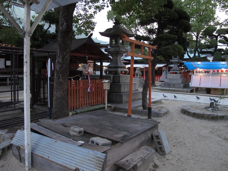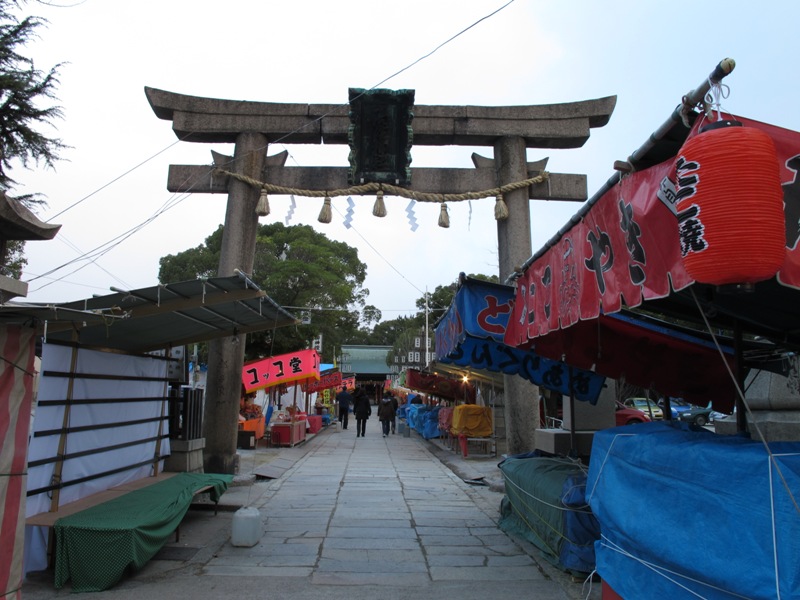 高浜神社です。お祭りや初詣の時期は屋台がいっぱい。子供の頃にくらべるとずいぶん屋台が減った気がしますが、一時に比べるとまたちょっと増えてきてるみたい。早朝だから人は少ないですが、夕方通ったらかなりごった返していました。