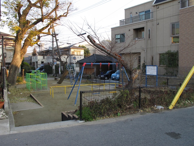 泪の池公園。道と公園に段差があるのがおわかりでしょうか?ここも昔は池だったみたいですね。