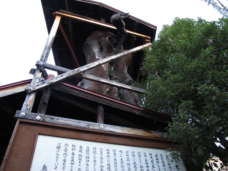 すでに枯れていて、祠に支えられるようにたっていますが、昔は空を隠すほどに大きかったんでしょうね~。