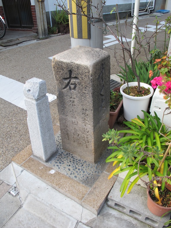 亀岡街道といえばやはりこの道標。昔は下の方が犬のマーキングポイントとしてまっ黒けだったんですけど、キレイになってます。