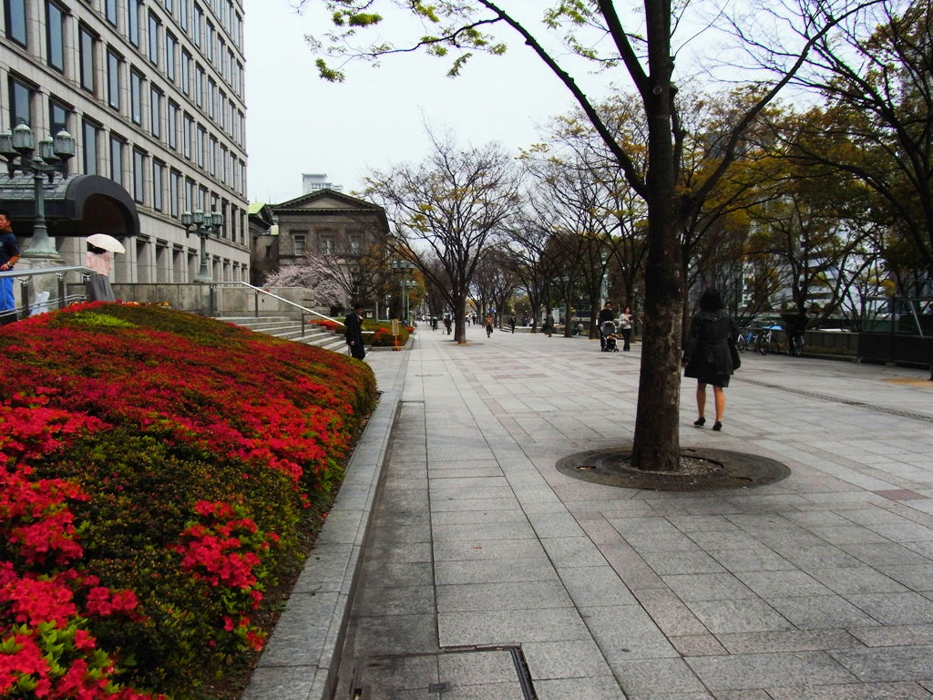大阪市役所周辺です。川沿いはたくさん桜が咲いてるのかなと勝手に思ってたけど、全然無い。