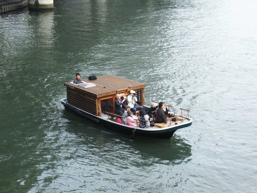 水晶橋から。屋形船のようなものが、水晶橋の下でUターンしていきました。いろんなタイプの船が出てるんですねー。乗ってみたい。