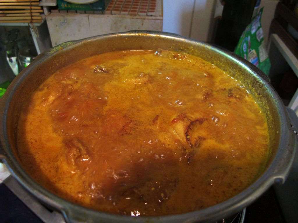 これらをさっきの鶏肉を煮てる鍋に投入する。