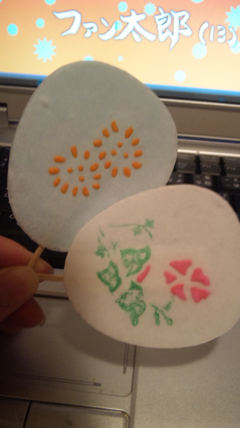 さて、その私が食べようとしてたお菓子は、小さい頃、大好きだったお菓子「うちわ」です。これが実はお盆の菓子だった事に気付いたのはかなり近年の事。近所のお菓子屋で母に買って買ってと言っていたこの「うちわ」、自分で買うようになって気づいたが、300円近くするのである。